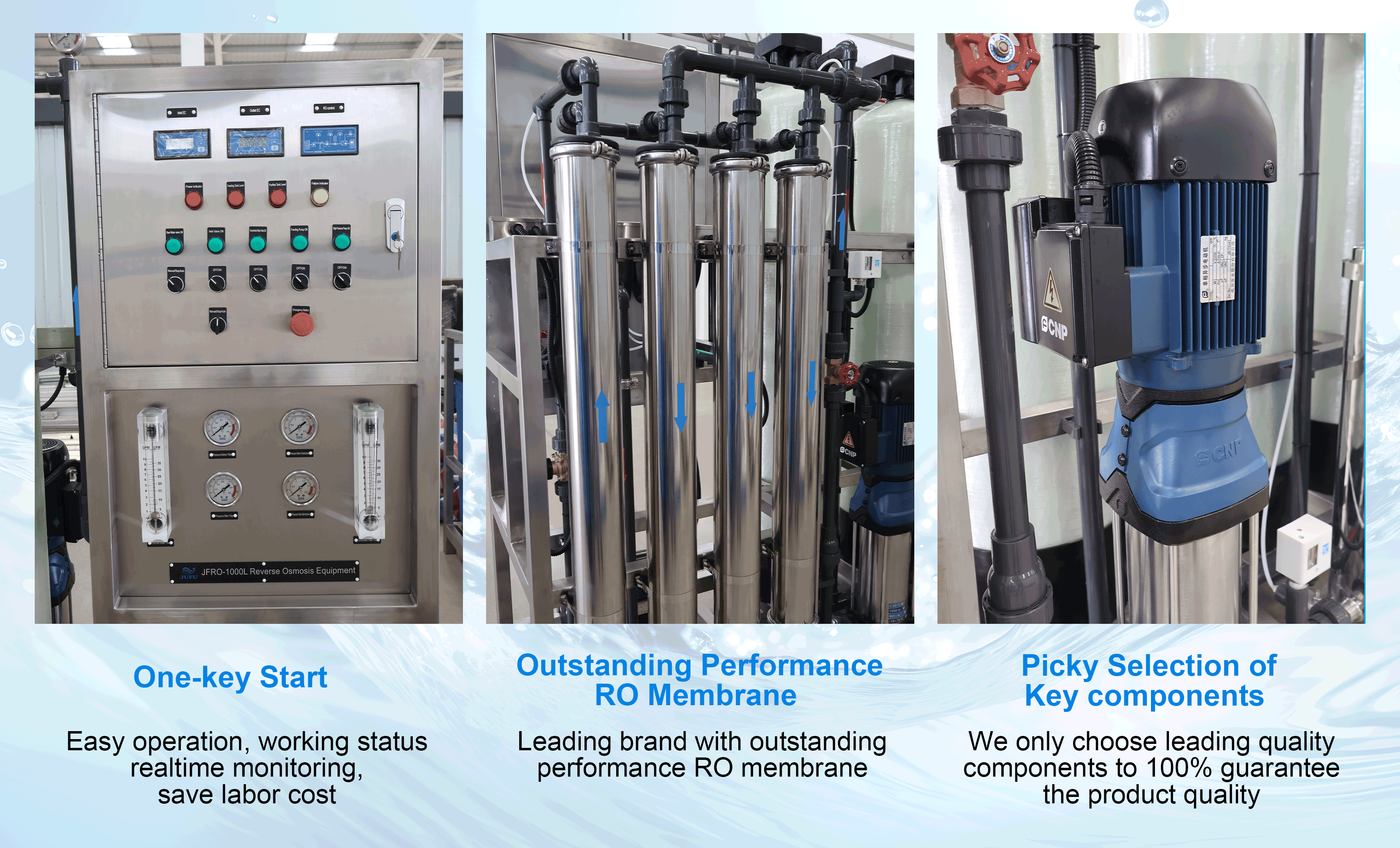 In the development of water treatment industry, reverse osmosis systems become most effective and mature technology to help human being to treat water at high efficiency, low energy consumption and affordable price. JUFU Water designed series of commercial reverse osmosis systems to carefully handle different water, different needs and different working conditions, we care each single unit!