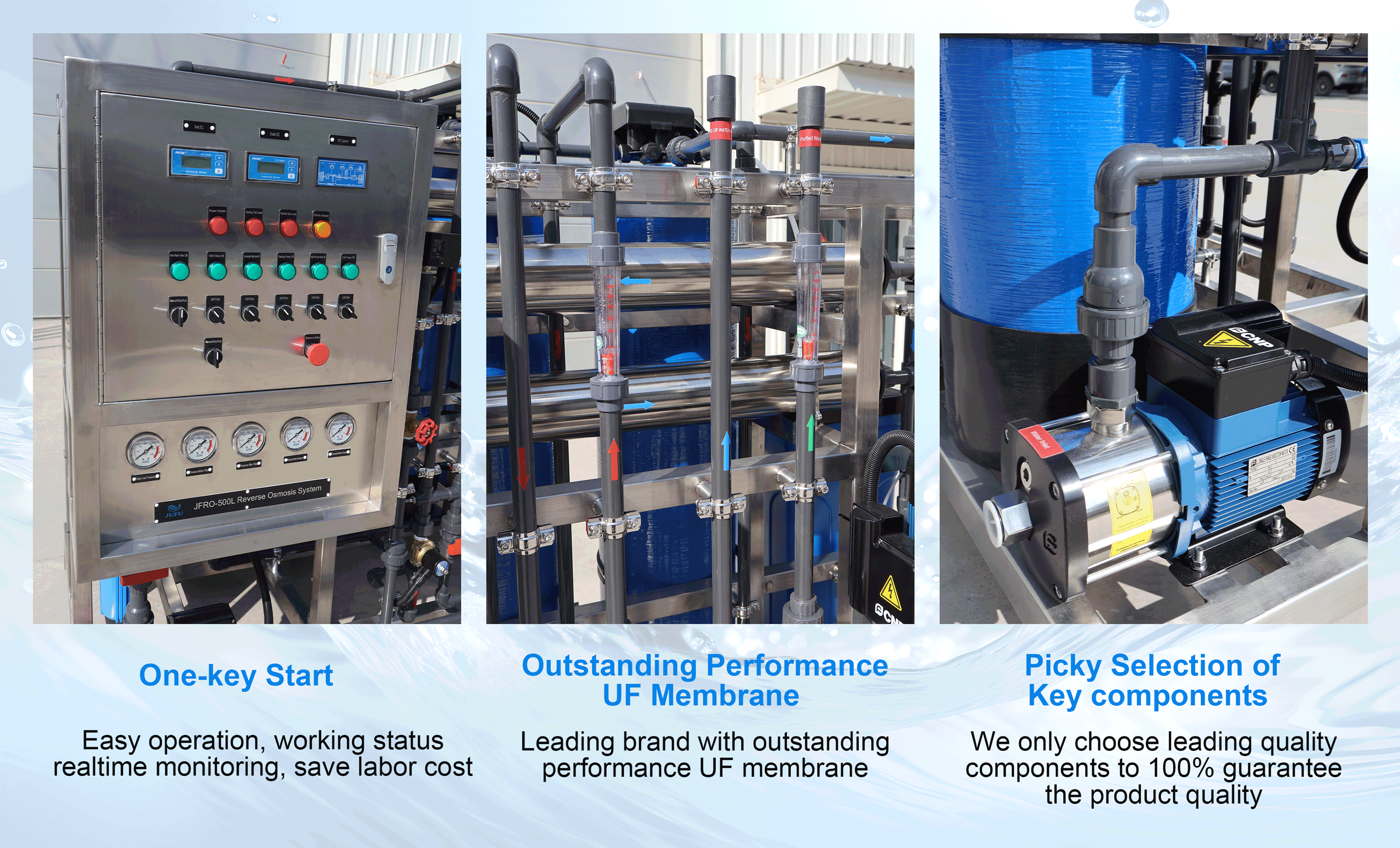 | Features | Removes impurities such as inorganic ions, bacteria, viruses, organic matter and colloids from raw water. | ||