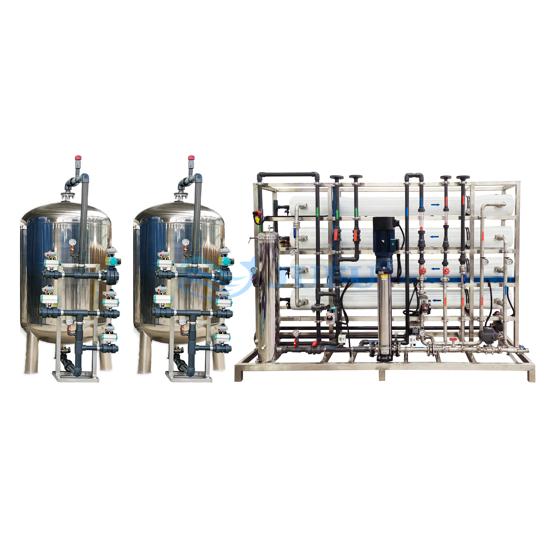 Pretreatment system can be a double guarantee for any water treatment system. By removing contaminants from water before it is treated, pretreatment can help to improve the efficiency, lifespan, and safety of the system. If you’re not sure about the right pretreatment for your case, you can send your water test report or at least a TDS value to Jufu Water, our professional sales team will design a proper pretreatment solution to partner with your RO.