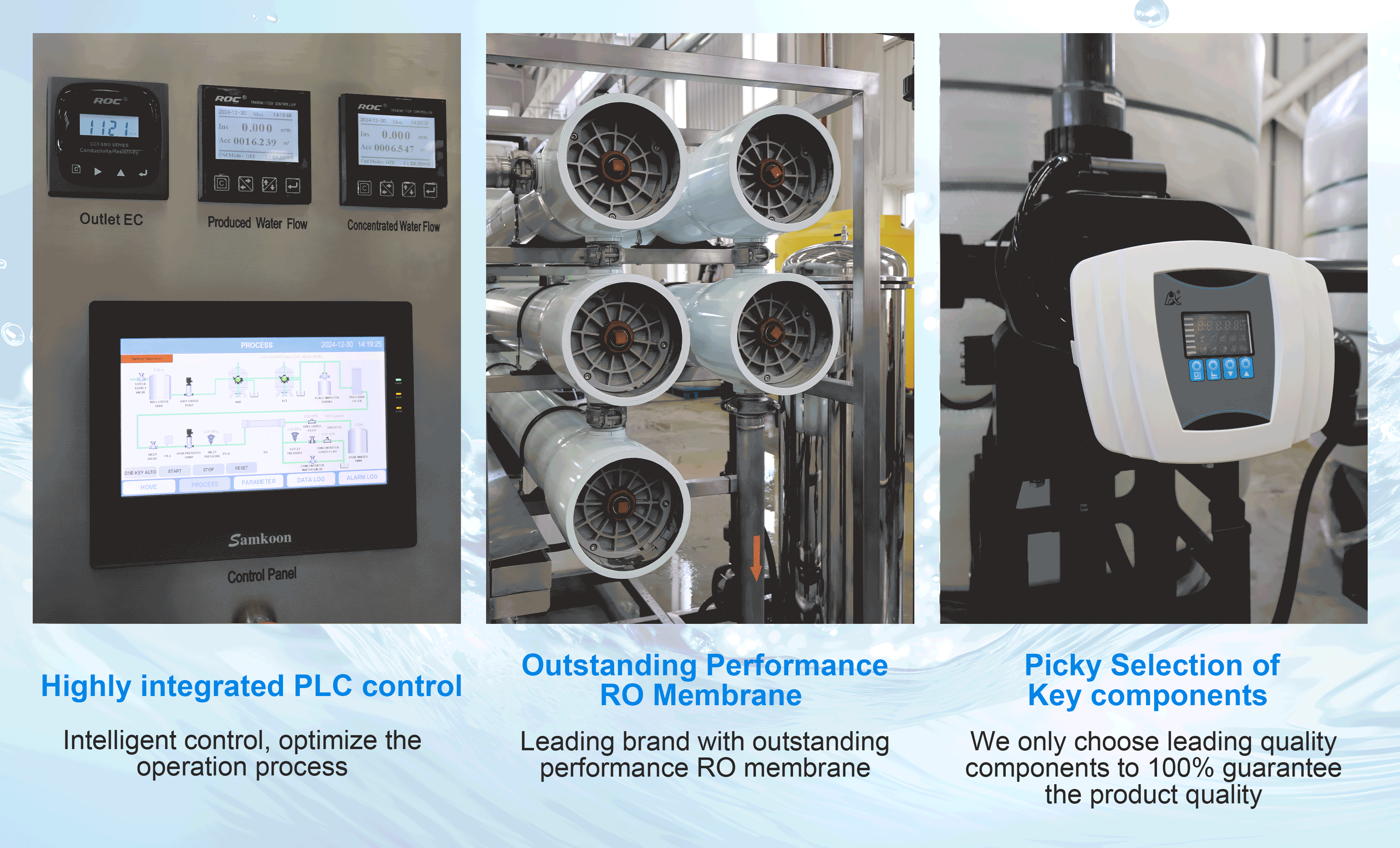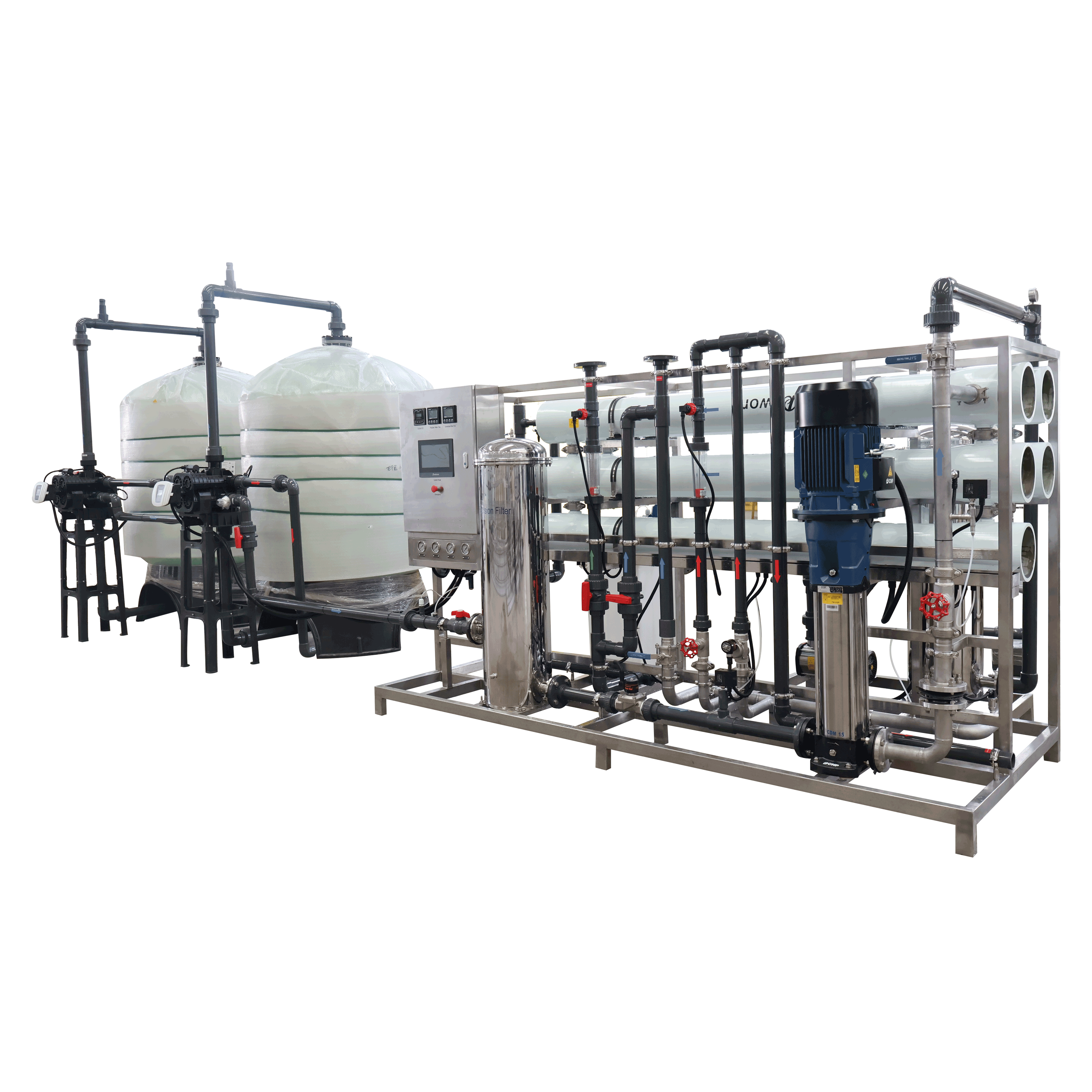 Customizable filtration: Revese osmosis system can be designed based on your actual raw water and your final applications, the proposal can be customized to eliminate each single stage to meet your water use target.